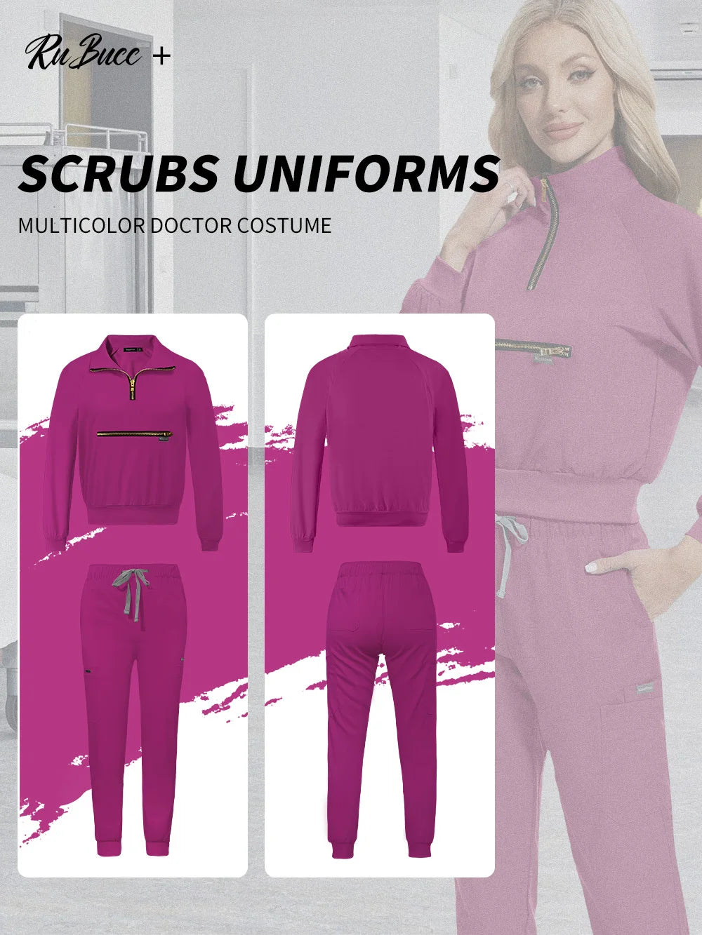 Stretchable Nurse Uniform Anti Wrinkle Long Sleeve Tops Jogger Pants Set Hospital Doctor Work Clothes Wholesale Medical Workwear
